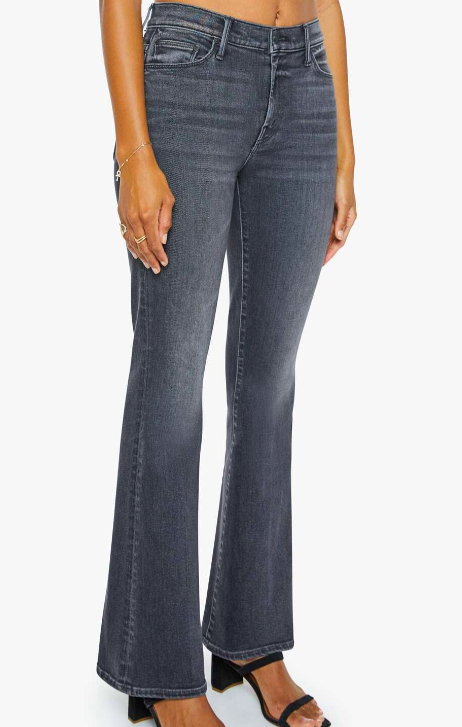 This cult-favorite flare jean has a mid rise with a 31-inch inseam and a clean hem. Cut from denim with a touch of stretch, Can You Call My Phone? is a faded black with subtle whiskering, fading and tonal hardware.